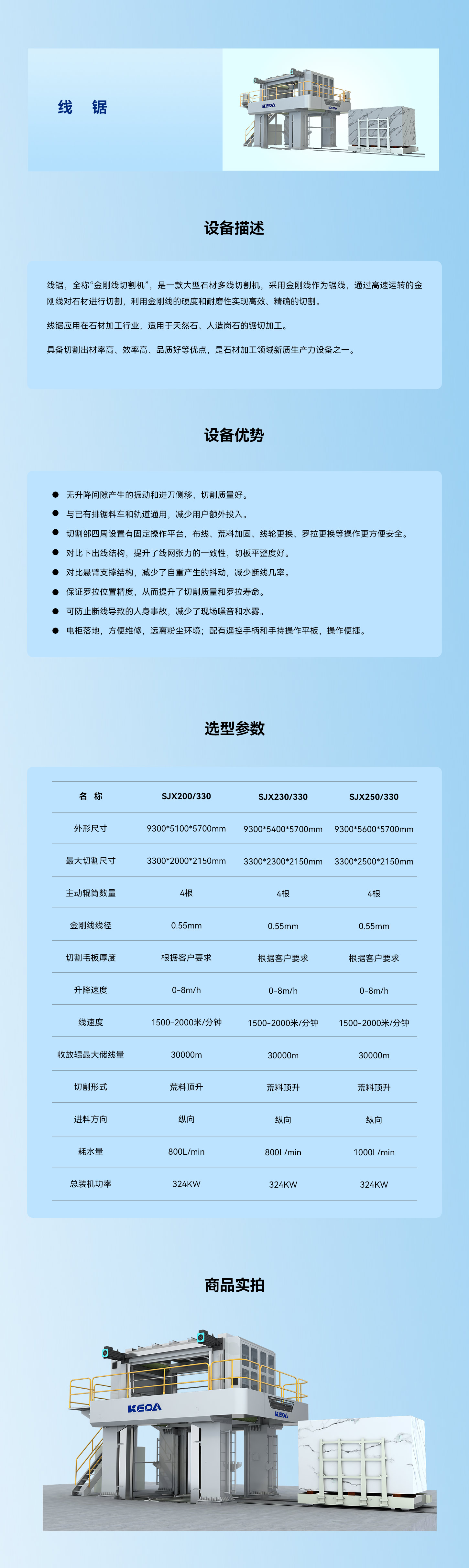 3. 操作平台:切割部四周设置有固定的操作平台,布线、荒料加固、线轮更换、罗拉更换等操作更加方便安全。